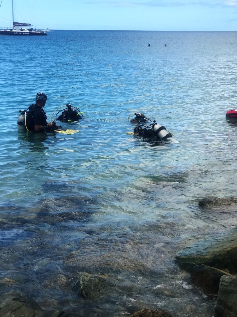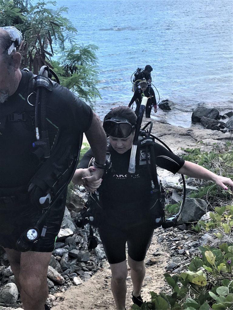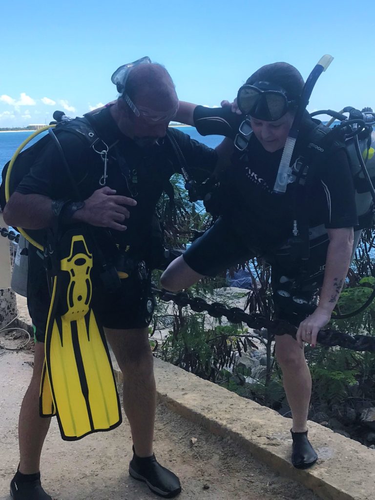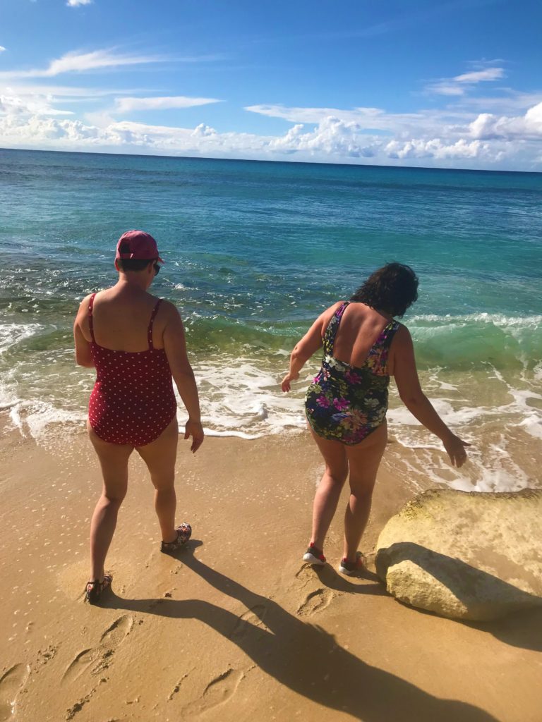 The Neighbors had to leave the following morning and being ‘crispy’ in spots from the sun, they did not want to spend any more time on the beach before they left, so we hung out – had another nice breakfast compliments of my Bride and just relaxed and enjoyed each others company before we had to haul them off to the airport. Hugs and kisses all around and soon we were headed back to the middle of the island, already missing our friends. As become custom, we stopped at Blues to toast having visitors and as well as them leaving and wishing them a safe return. Also becoming almost customary, we wind up sitting there getting about half $hit faced and chatting it up with everyone else sitting there doing the same thing. We did not get to lay around and relax the next day which is something else we usually do – as we were asked to help our friends at Blues with an event they were partaking in. It was called Sunset BBQ on the Pier and a lot of the local establishments around the island came out to show off their talent in the BBQ arena. It wasn’t a competition but more of a “Hey, come try our stuff~!” We arrived at 10:00 the next morning to help get trucks loaded and ready to haul down to the pier. We got to the pier and started setting up the Blues Booth. We were told we had to be set up by 3:00pm – even though the actual event didn’t start until 6:00pm. We got all set up and then waited for the gates to open…… and boy-oh-boy did they open…….. At exactly 6:00pm the gates opened and by 6:02 we had people lined up at our table looking for BBQ Brisket and pulled pork….. and that line stayed there until around 08:45 when we finally ran out of food. Jim said this morning we served 476 sliders of BBQ. They also had a small bar set up on the side serving Island Girl and Key Lime Pie drink samples. I don’t know about the bartenders, but everyone else got their lips worked off, including the 5 people prepping and making the sliders. I came around to the serving side of the table to help Angie about 6:20 and didn’t leave until we were out of food. WOW~!! We were all shot by the time the event was over, but still had to load up the trucks and get the stuff back to Blues. My Queen managed to get herself on the front pages of the newspaper during the whole process of the event. I managed to keep my big belly out of most pictures 😉 Nice turn out for the whole event, which was a fundraiser for various charities on the island. No doubt in my bald head, they did good for the event. By the time we got back to the condo, it was just past 10:00pm – a long day indeed for us old folks (which is why I didn’t get a blog out that night)……. At my limit again, so stopping here…….